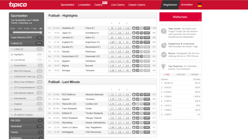 Schon jetzt sollte das Interesse geweckt sein, Tipico auszuprobieren und zu sehen, ob es hält, was es verspricht. Um Tipico auszuprobieren ist jedoch eine Anmeldung erforderlich. Das funktioniert ganz einfach über die Startseite von Tipico.